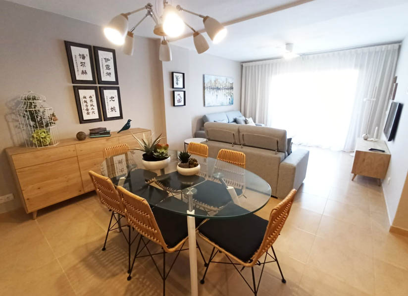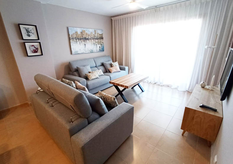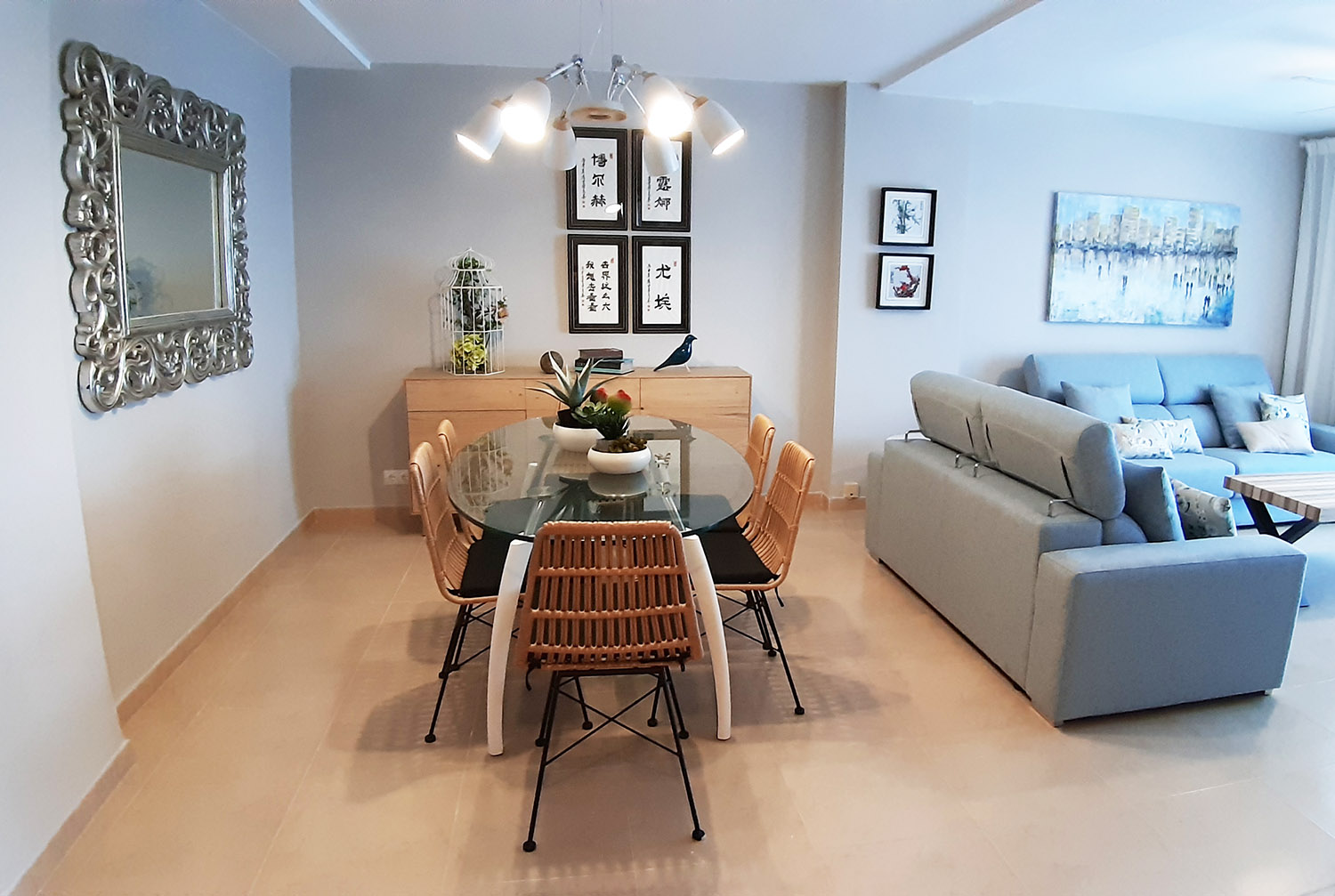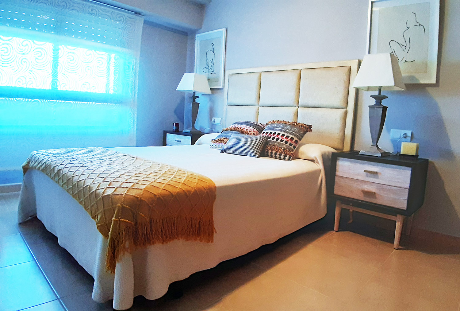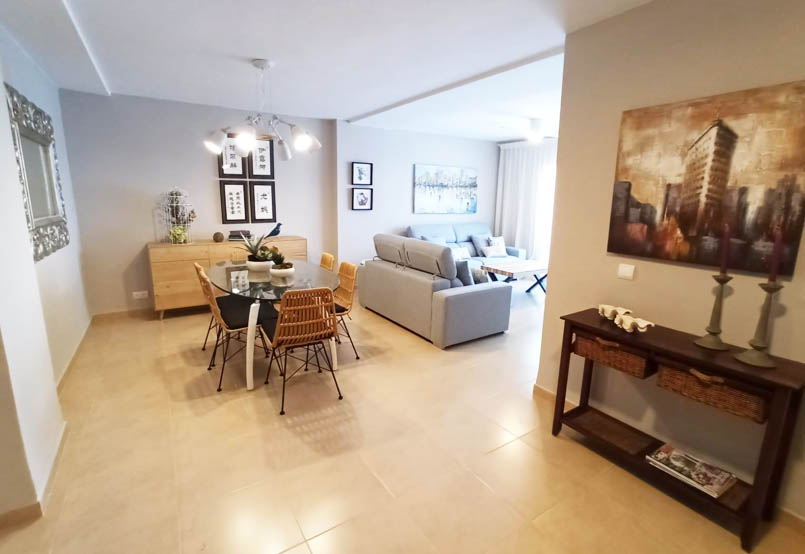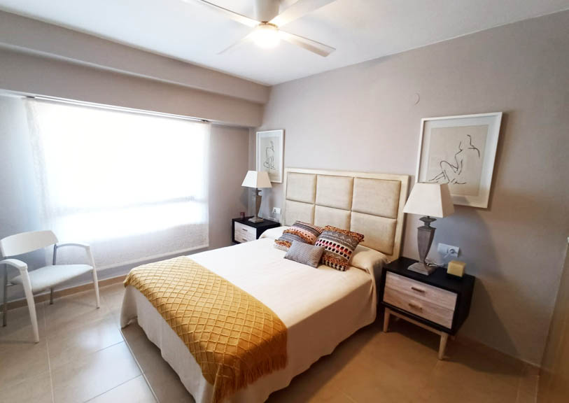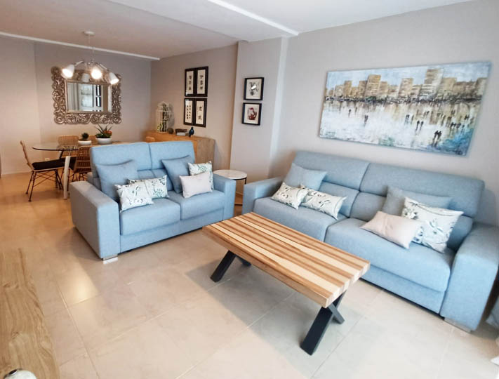 Vivienda en Gandía Playa (Valencia). Interiorismo integral en vivienda de 4 dormitorios, 2 baños, salón comedor. Mobiliario, textiles y elementos decorativos.