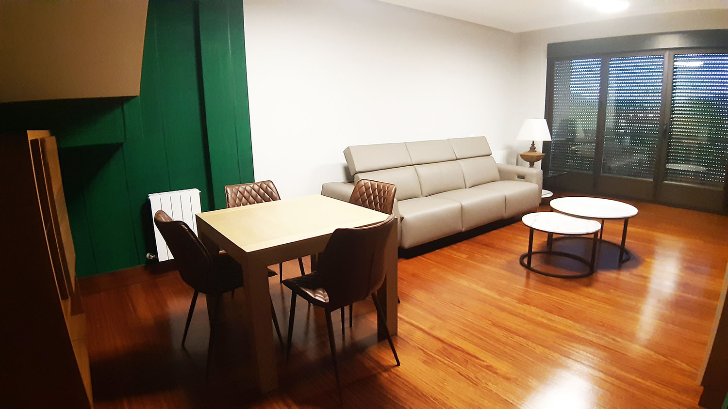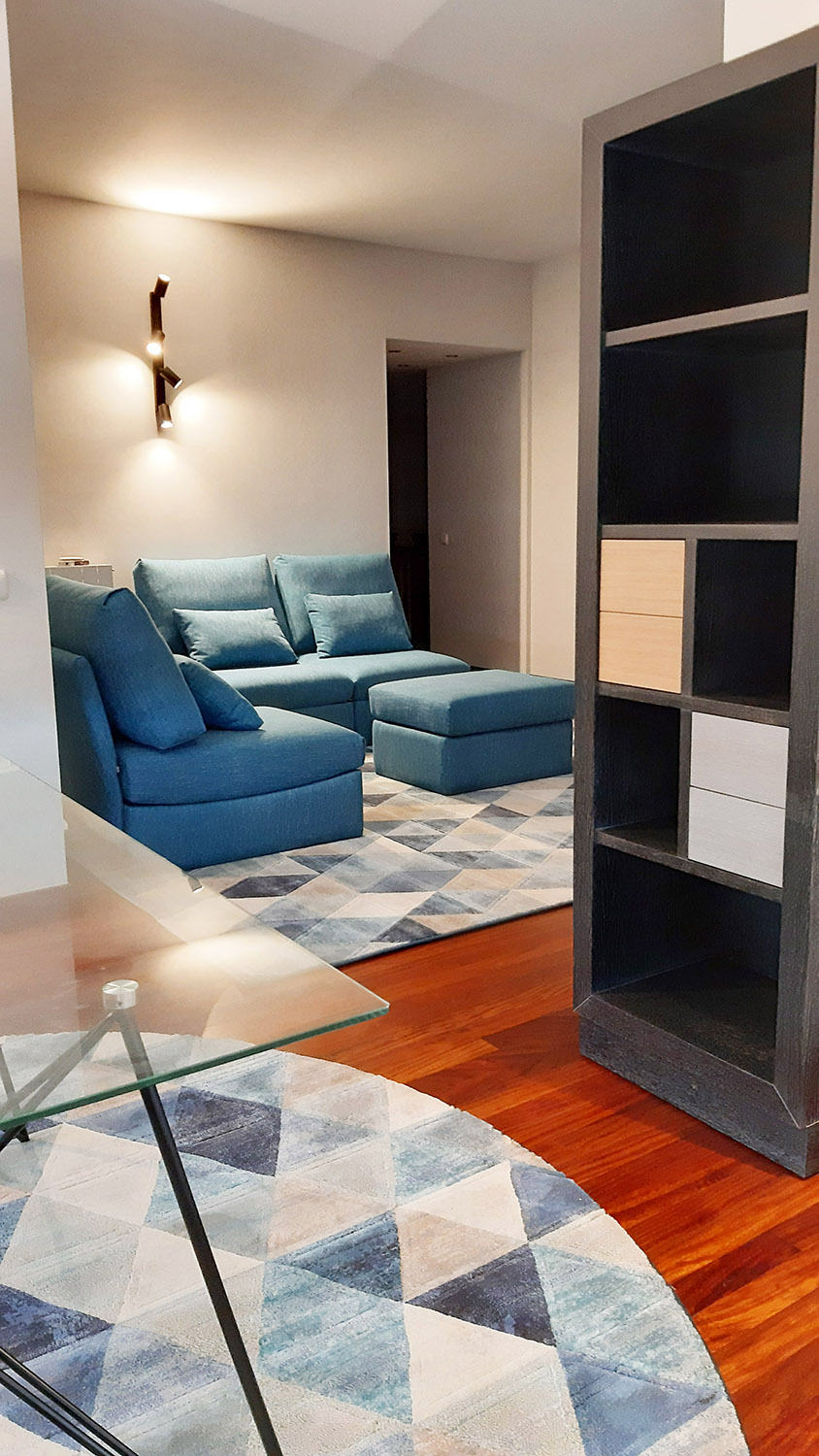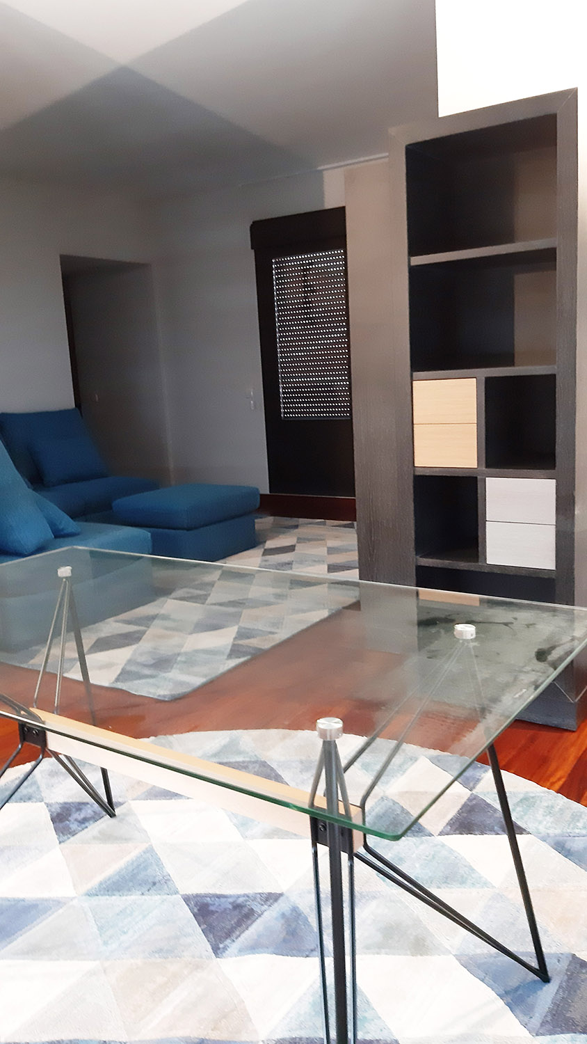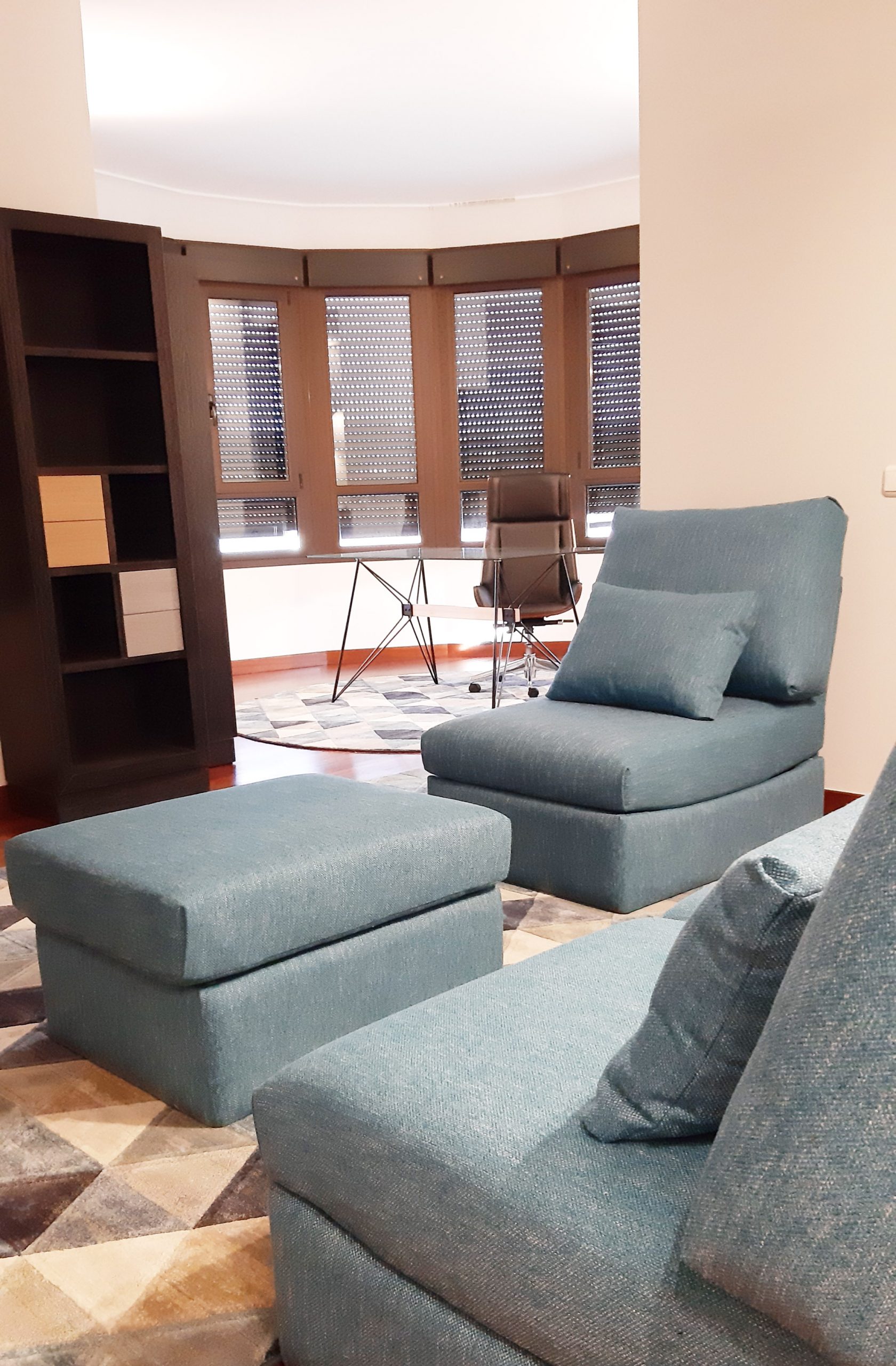 Mobiliario completo para vivienda en Durango. La vivienda se compone de 3 habitaciones, salón, cocina, 2 baños y estudio en la planta superior. Toda exterior. Desde TANDEM nos hemos encargado de amueblar la totalidad de las estancias, hemos creado las alfombras a medida y personalizas, papel pintado en las paredes con texturas. En las habitaciones Cabecero tapizados: madera lacada y ecopiel. Salón comedor con sofá de cuero. Elementos decorativos: iluminación, textil (ventanas y camas), cuadros.