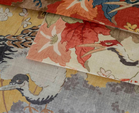 Wisley presenta un estampado de flores y aves en tres llamativos colores.